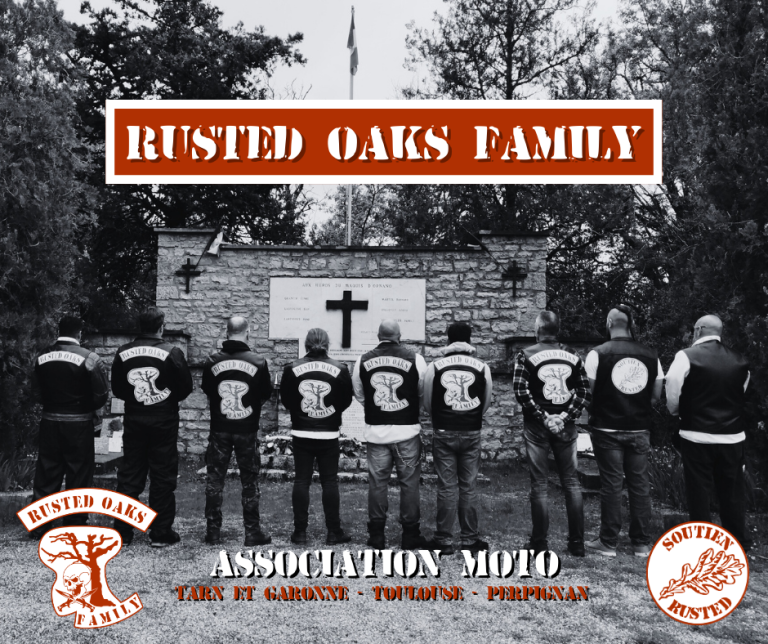 Les Rusted Oaks Family est une association moto patriotique fondée en février 2013 par Rémi, Manu et JP — deux fils de militaires et un ancien militaire. Tous trois ont souhaité agir concrètement pour soutenir les veuves, orphelins et blessés de guerre, marqués par les départs en mission, les pertes et les familles laissées derrière.
